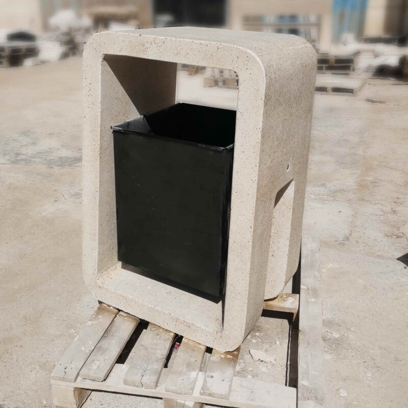 سطل زباله بتنی مخصوص پارکها، بوستانها، با طراحی زیبا و سطل فلزی گالوانیزه با حجم 80 لیتر ارتفاع کلی سطل 95 سانتیمتر